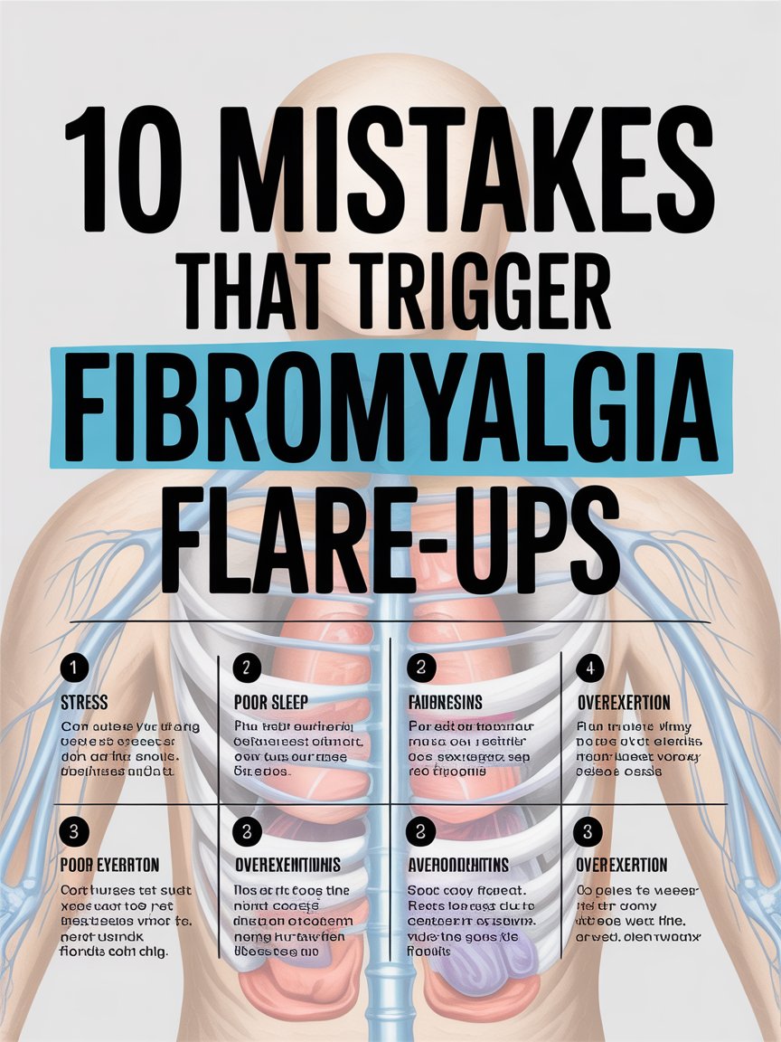 Fibromyalgia flare-ups are periods when symptoms such as pain, fatigue, and stiffness suddenly worsen. These flare-ups can be frustrating and unpredictable, often interfering with daily life. While triggers vary from person to person, certain common habits and mistakes can increase the risk. Recognizing and avoiding these triggers can help reduce the frequency and intensity of flare-ups.